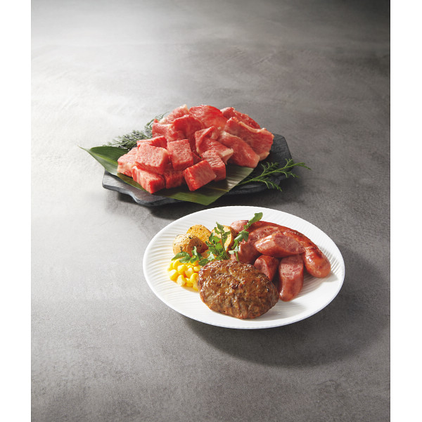 肉の旨みをたっぷり楽しめる精肉に、パリッと感がたまらないソーセージと肉汁あふれるハンバーグ。山形育ちのブランド牛を存分に味わえるセットです。
