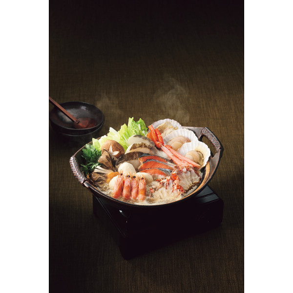 多彩な旨みが鍋の中で一つにとけあう海鮮寄せ鍋。紅ずわいがにをはじめ、鮭、タラ、ホタテ、エビなど海の幸を多彩に盛り込んだ海鮮鍋のセット。様々な具材の旨みが鍋の中で一つになるおいしさを満喫していただけます。